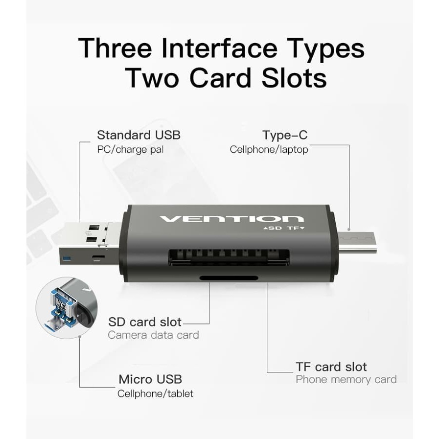 VENTION ALL IN 1 MICRO USB 3.0 TYPE C OTG CARD READER MICRO SD TF – CCH