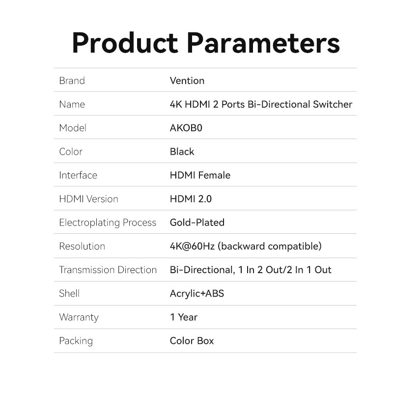 VENTION HDMI SWITCHER (2 IN 1 OUT / 1 IN 2 OUT) BACKWARD SUPPORT – AKO