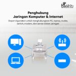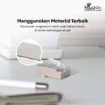 Konektor EZ RJ45 adalah konektor jaringan yang dirancang untuk mempermudah pemasangan kabel UTP atau FTP pada standar Cat5e dan Cat6. Dengan lapisan emas 3U, konektor ini memberikan koneksi yang lebih stabil, mengurangi gangguan sinyal, serta meningkatkan daya tahan terhadap korosi.