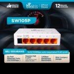 Features - 5 10/100Mbps auto-negotiated RJ45 ports - Lan1 port support 5-24V passive PoE IN power supply - Supports IEEE 802.3x flow control for Full Duplex mode and backpressure for Half Duplex mode. - Mini plastic design supports desktop placement or wall mount. - 1K entry MAC address table and automatic address learning. - Auto-MDI/MDIX eliminates the need for crossover cables. - Store- and-Forward switching scheme. - Performs non-blocking full wired speed. Specifications: Standards : IEEE 802.3, IEEE 802.3u, IEEE 802.3x Interface : 5*10/100Mbps auto-negotiation RJ-45 Ports (Auto MDI/MDIX) Power Supply : 5VDC/1A, or LAN1 PORT 5-24V Passive PoE Power supply LED : 1* Power, 5*LANs MAC Address Learning : Auto-learning, auto-aging MAC Address Table : 1K Network Media : - 10BASE-T: UTP Cat 3 or above cable - 100BASE-TX: UTP Cat 5, 5e or above cable Backup Bandwidth : 1Gbps Transmission Method : Store-and-forward Package Contents : - SW105P Desktop Switch *1 - Power Adapter*1 - Quick Installation Guide *1 Environment : - Operating Temperature: 0?~40 ? (32 ?~104?) - Storage Temperature: -40?~70 ? (-40 ?~158?) - Operating Humidity: 10%~90% non-condensing - Storage Humidity: 5%~90% non-condensing BARANG ORI & GARANSI RESMI (TIDAK CACAT FISIK / TERBAKAR) GARANSI HANYA UNIT ONLY
