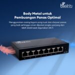 HSAIRPO SWITCH HS-SW108T ETHERNET 8 PORT 10/100M RJ45 FAST LAN NETWORK HUB METAL SHELL MENDUKUNG DC 5V/1A & 12V/1A