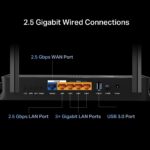 - 2× Port 2.5G: 1× port WAN 2.5 Gbps, 1× port LAN 2.5 Gbps, dan 3× port LAN 1 Gbps untuk transmisi data berkecepatan tinggi.§