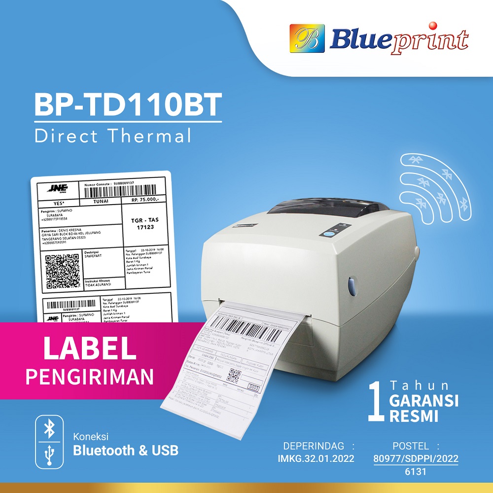 Printer Thermal Barcode Label Resi A6 Blueprint BP-TD110BT | Printer Label Bluetooth